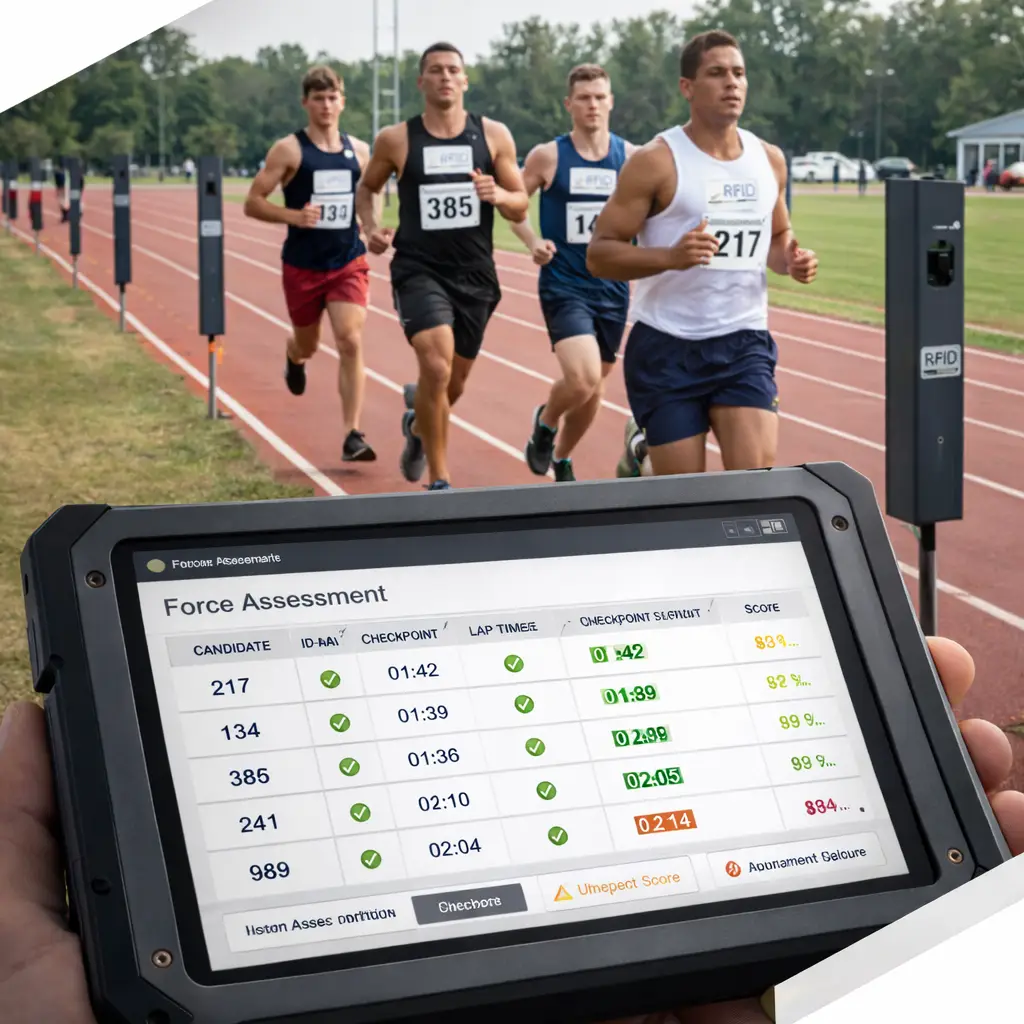 Force Assessment System is an enterprise-grade digital evaluation platform designed to modernize and secure large-scale police recruitment processes. It digitizes candidate registration, ground entry validation, physical test execution, performance capture, scoring, and result processing through seamless integration of RFID technology, smart devices, and centralized control applications.